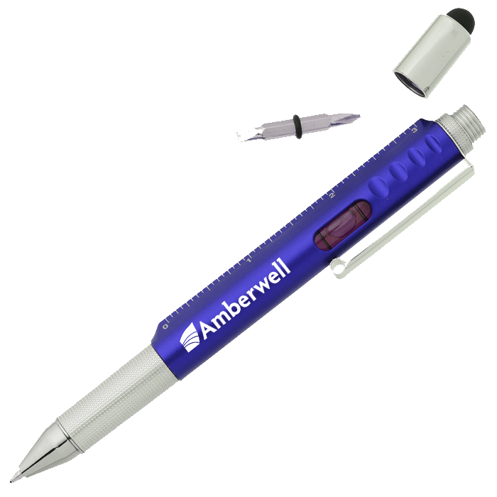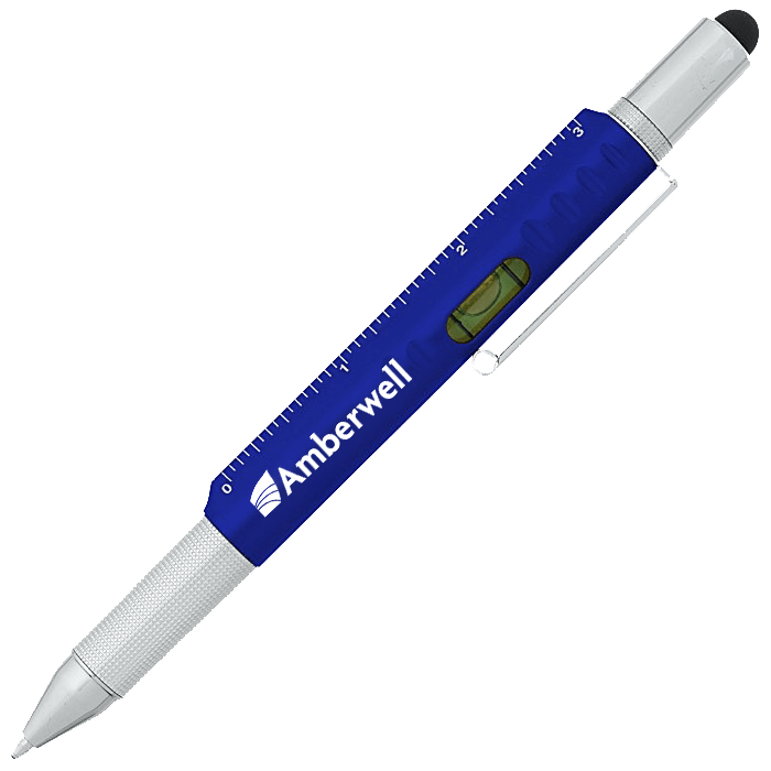 This unique plastic stylus pen has six functions. Available in several colors, all with a chrome finish.